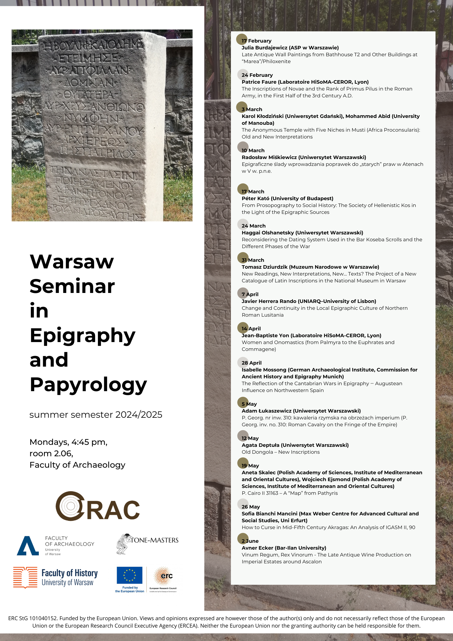 Epigraphy and Papyrology Seminar – Summer Semester